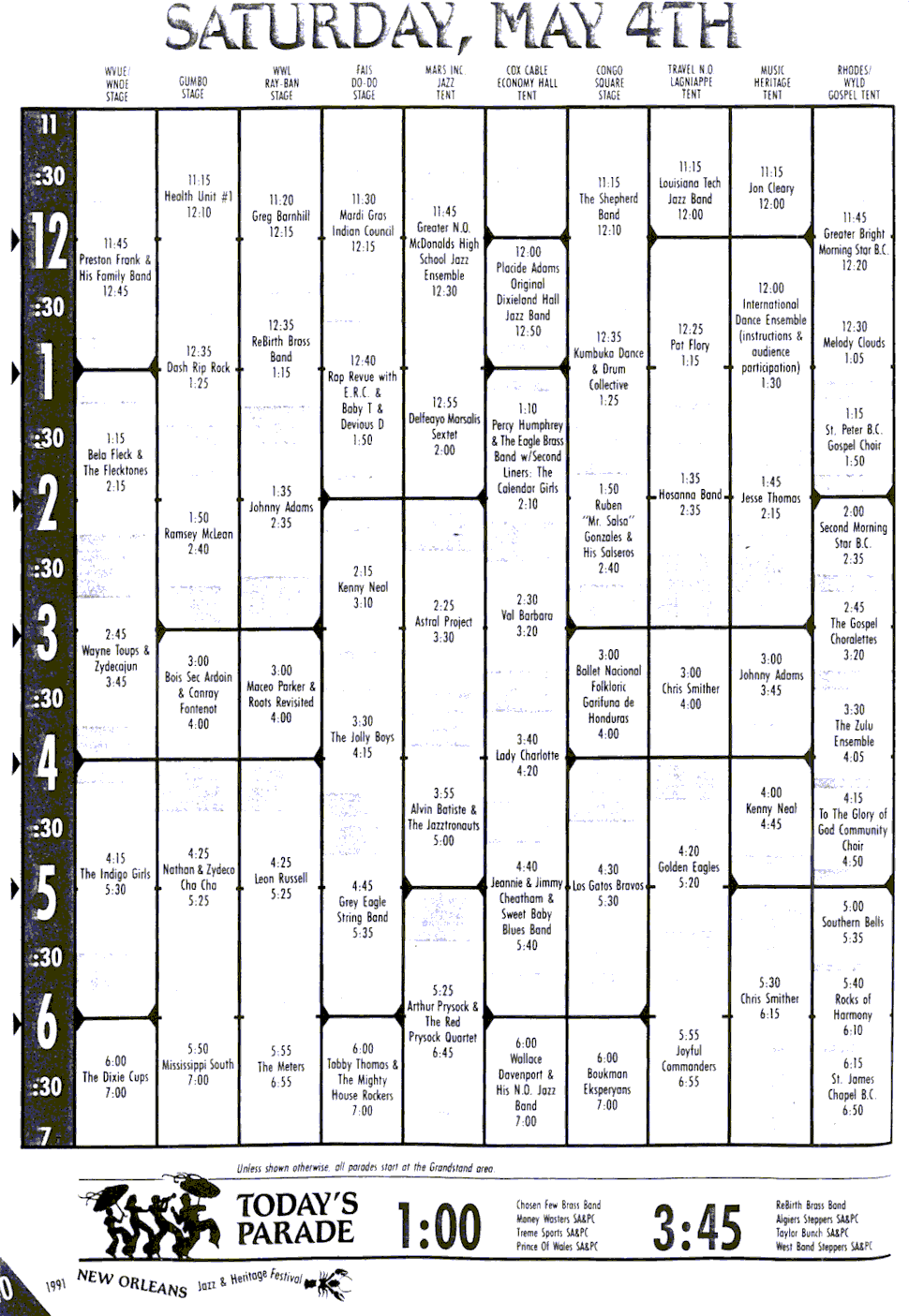 In 1991, the Fest added a seventh day to the schedule - Thursday of second weekend.