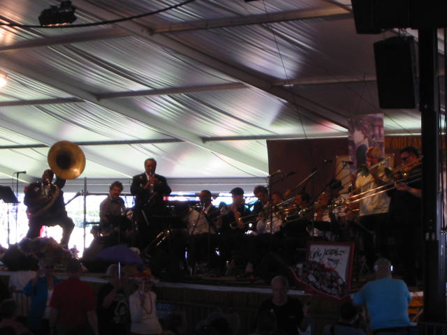 Kirk Joseph and Friends of Frog: A Tribute to Warren "Frog" Joseph, Economy Hall Tent. That's nine, count 'em, nine trombones, including Bonerama (the 3 on the right) |