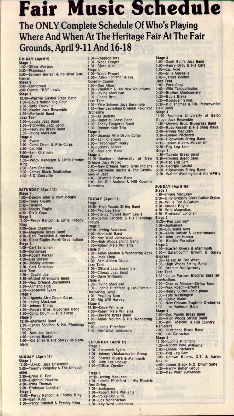 Many sites publish the schedule for the current year's New Orleans Jazz & Heritage Fesiival. But most sites take those pages down once the Fest is over, or when the next year's schedule becomes available. The Cube Rescue Program was started to archive those schedules, for those interested in the history of the world's greatest music festival, or for anyone who just wants to relive the glory of Festivals Past.